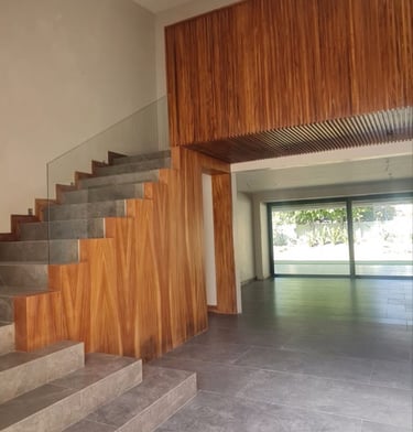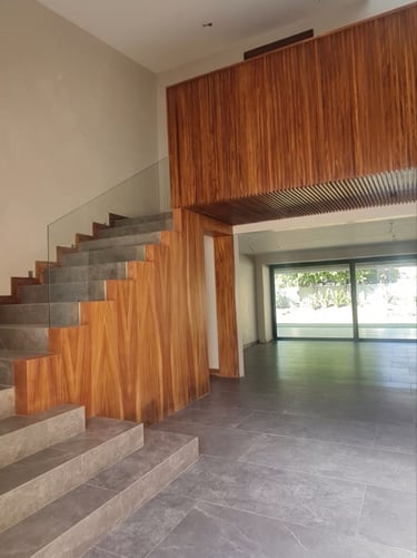 Construcción con acabados Premium en dos plantas de 585 m2 aproximados, y una superficie de terreno de 940.14 m2 con jardín trasero de 275 m2. En Planta Baja: - Sala con cava integrada - Cocina con isla y despensa amplia en cuarto, refrigerador y congelador tipo francés; family room integrado con desayunador con vista a un patio privado con fuente y escultura anexa. -1 Recamara y/o estudio de 4.00x7.80 m con baño completo, patio privado e ingreso por la calle. - 2 Baños de visita que se pueden abrir totalmente a jardín interior con fuente - 1 Terraza de 15 metros de largo con bar, T.V y jardín interior integrado con escultura y techo de duela de madera., cajillos para ocultar cortinas - Cuarto de lavado, recamara de servicio c/ baño. - Cochera techada para 4 autos y carrito de golf. - Dos bodegas en cochera. - 1 Recamara y/o estudio de 4.00x7.80 m con baño completo, patio privado e ingreso por la calle. - 1 Gimnasio con vista al jardín a una fuente privada. - 2 Baños de visita - Vestíbulo doble altura. Con escalera escultórica Puerta de ingreso a doble altura de madera de parota. PLANTA ALTA. - 3 Recamaras con baño y vestidor cada un