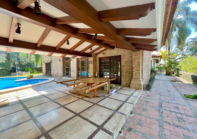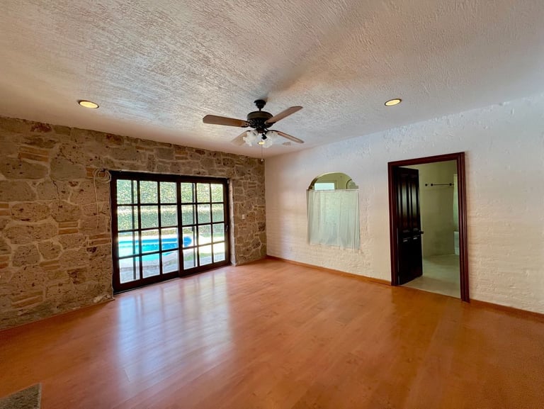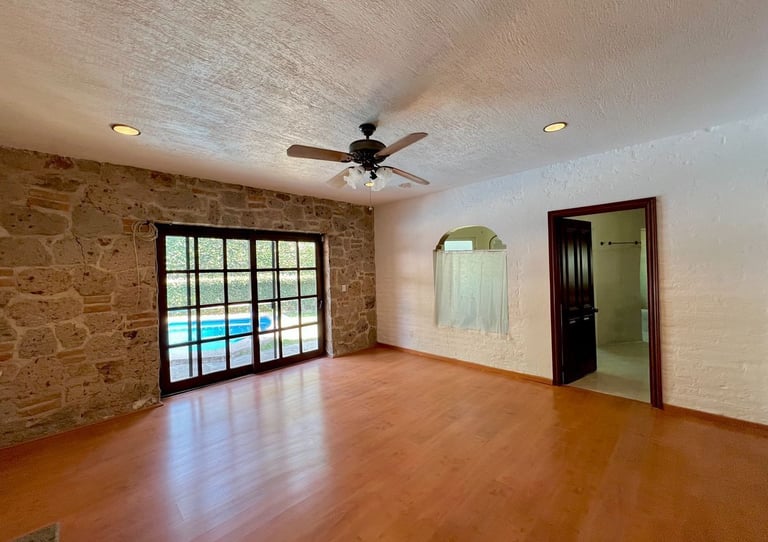 • Recámara principal con patio privado y vista a la alberca, chimenea, baño en suite con jacuzzi, walk-in closet y doble vanidad de mármol.