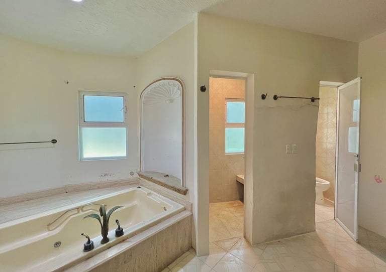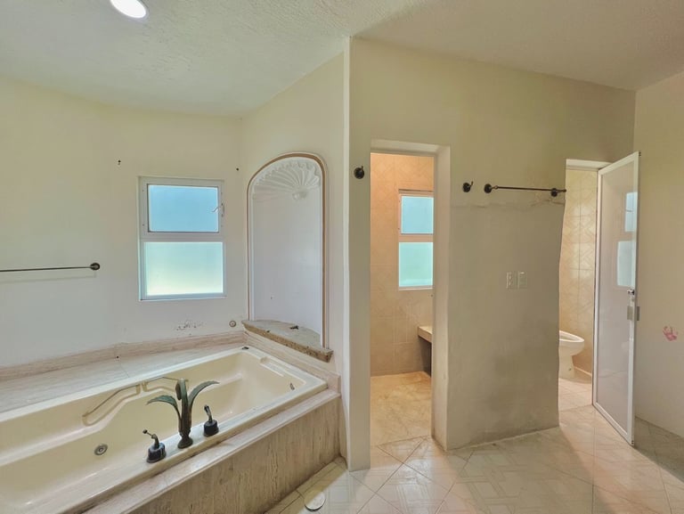 • Recámara con baño privado en suite, tina, walk-in closet y balcón con vista a la alberca y campo de golf.