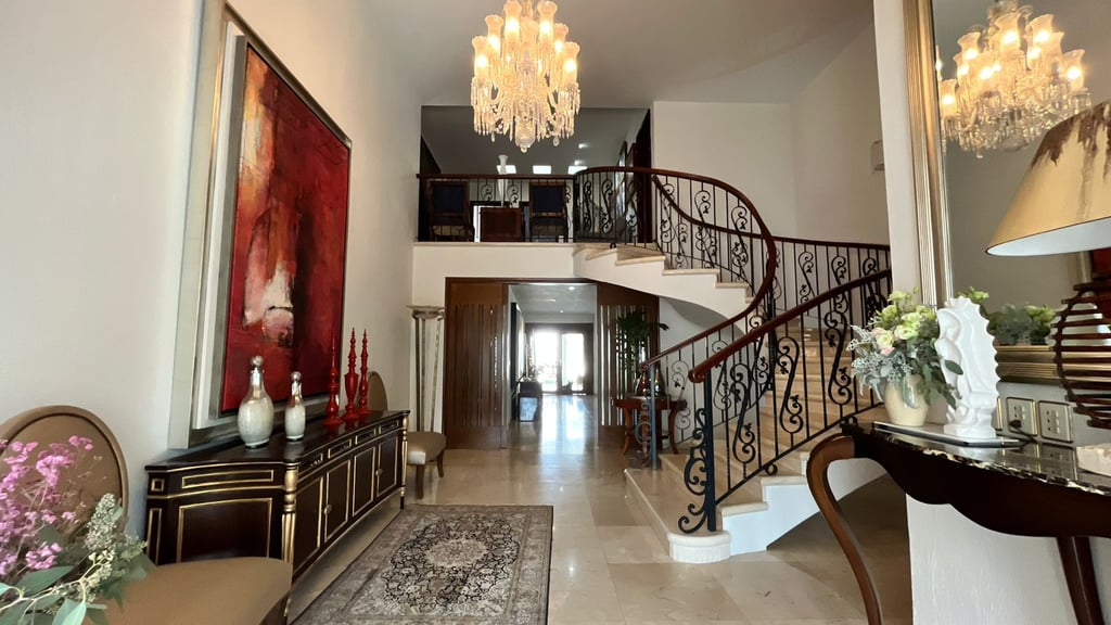 INGRESO A DOBLE ALTURA, BAÑO DE VISTAS, ESTUDIO. SALA, COMEDOR, BAR, AREA DE JUEGOS, COCINA CON DESAYUNADOR, DESPENSA, CUARTO DE SERVICIO AREA DE LAVADO , COCHERAS