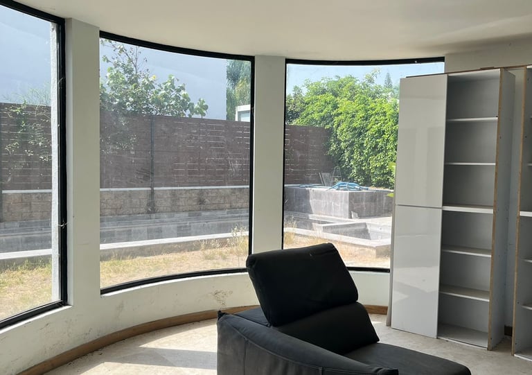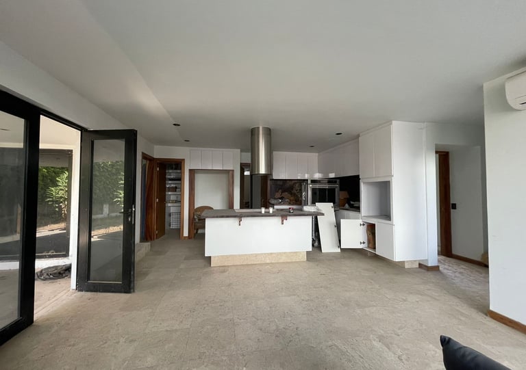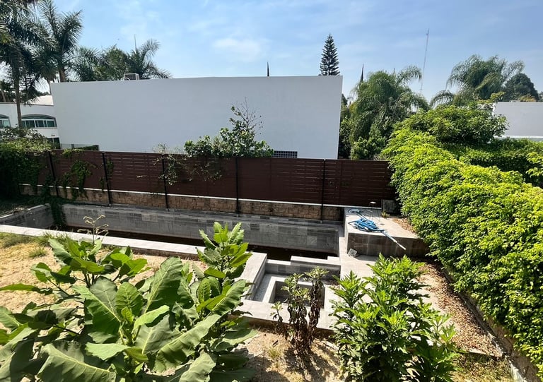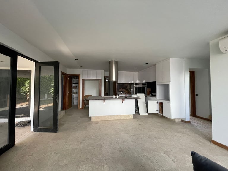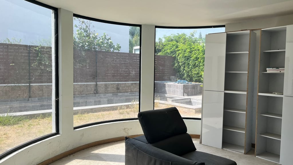 INGRESO, SALA, BAR, COCINA CON DESAYUNADOR, COMEDOR, BAÑO VISITAS, CINE, TERRAZA , ALBERCA Y JACUZZI, BAÑOS ALBERCA,